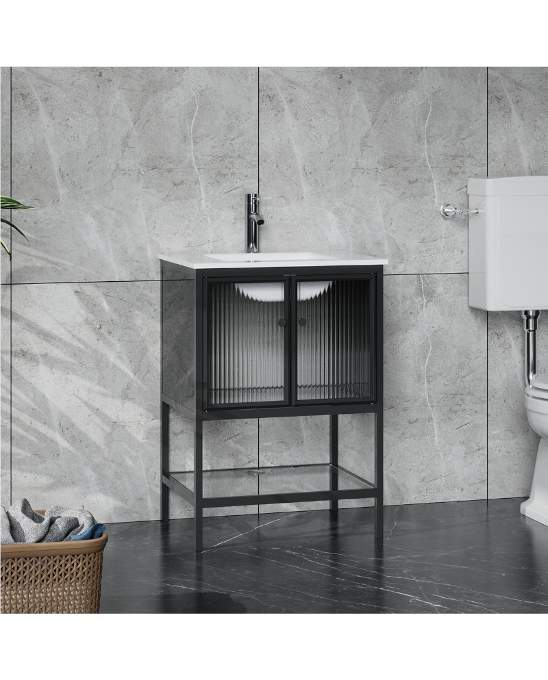 Austin 60 är ett elegant och funktionellt stående skåp i svart finish, perfekt för att skapa en modern och stilren atmosfär i ditt badrum. Tillverkat i hållbart MDF-material, skåpet har en soft-closing funktion som gör att dörrarna stängs tyst och mjukt. Det är designat för självmontering, vilket gör det till ett bra val för den som vill ha en DIY-lösning. Skåpet inkluderar inte ett tvättställ, vilket gör att du kan anpassa det efter dina egna behov och preferenser.