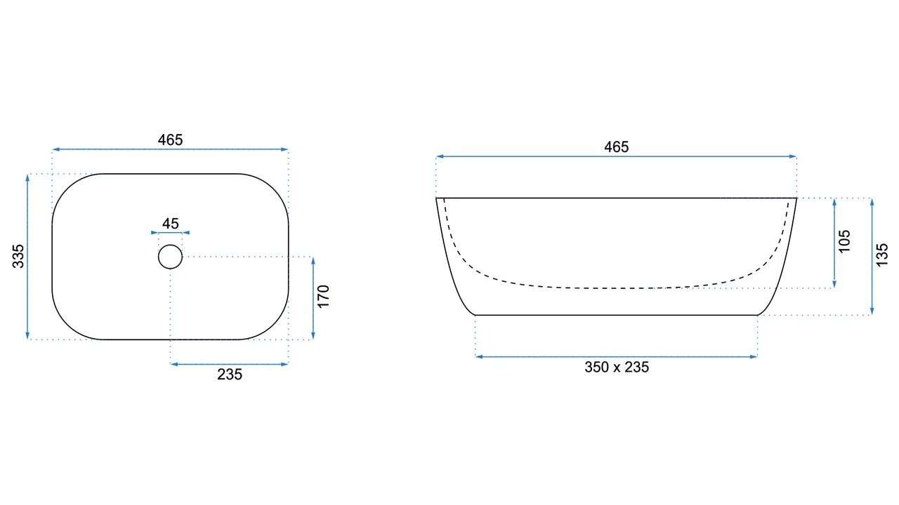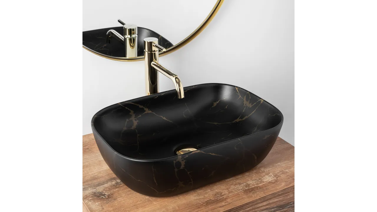 Tvättstället är tillverkat i högkvalitativt sanitetsporslin, speciellt framtaget för att vara både hållbart och lätt att rengöra. Det är avsett för montering ovanpå bänkskiva eller kommod, vilket ger ett exklusivt och minimalistiskt uttryck.