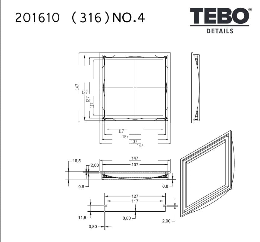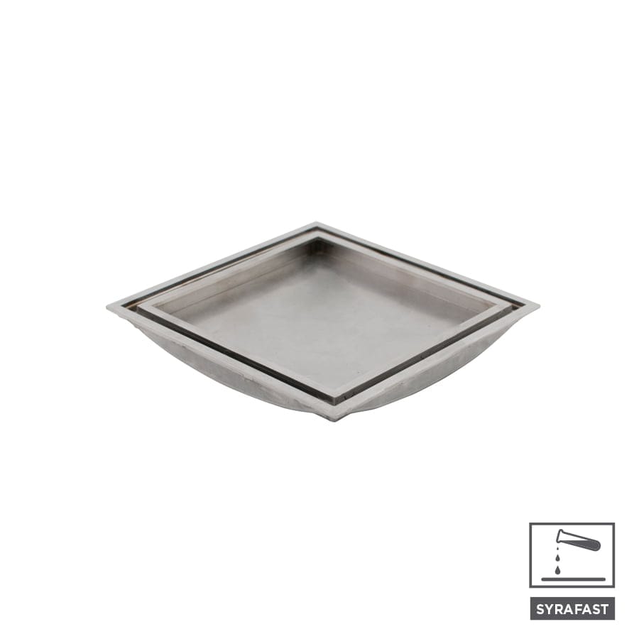 Stilren golvbrunnssil med ram för montering av klinker. Tillverkad av borstat rostfritt stål typ AISI 316. Består av två delar: Klinkerram och klinkerlåda. Godstjocklek: 0,8 mm. Syrafast. Vändbar klinkerlåda med en sida för montering av klinker och en med slät borstad rostfri yta. Rekommenderad i miljöer med högre krav där t.ex. klorider och salt förekommer.